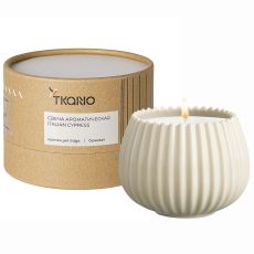 "Свеча ароматическая Italian Cypress бежевого цвета из коллекции Edge с дизайном, вдохновленным русскими традициями, отлично подойдет для домашнего декора и создания в интерьере уютной, расслабляющей атмосферы. Фактурные грани и округлая поверхность фарфорового стакана отсылают нас к образу...
