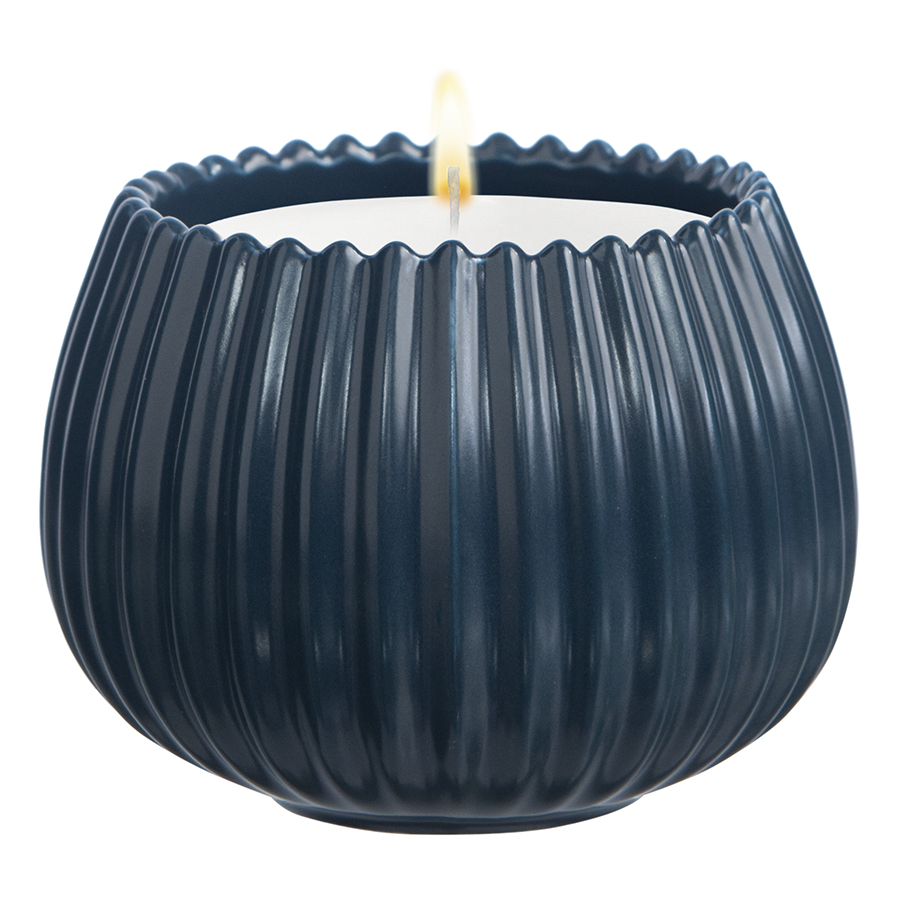 "Свеча ароматическая Black Ink синего цвета из коллекции Edge с дизайном, вдохновленным русскими традициями, отлично подойдет для домашнего декора и создания в интерьере уютной, расслабляющей атмосферы. Фактурные грани и округлая поверхность фарфорового стакана отсылают нас к образу купола – символу духовного подъема и стремления к совершенству. Экологичные материалы, такие как соевый, кокосовый воск и фитиль из натурального хлопка делают свечу безопасной для здоровья и окружающей среды. При горении она не выделяет вредных соединений и не коптит. Однако, во избежание перегрева стакана, рекомендуем не зажигать ее более, чем на 4 часа.