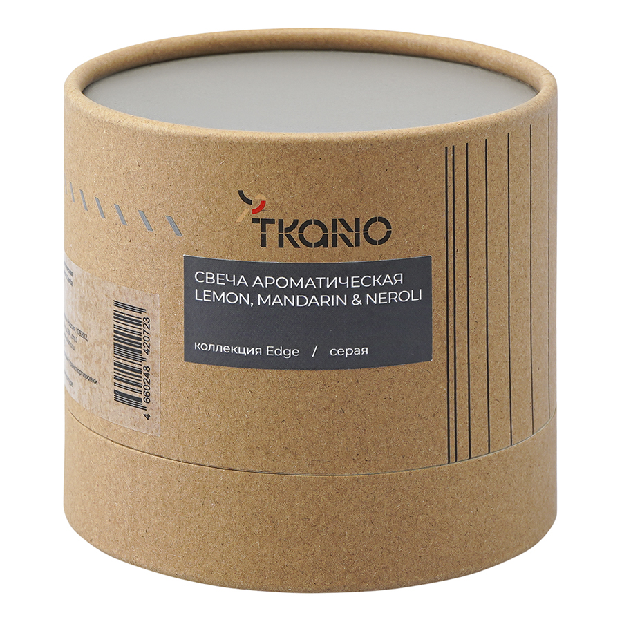 Свеча ароматическая с деревянным фитилём Lemon, Mandarin & Neroli из коллекции Edge, серый, 60 ч, Tkano