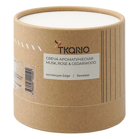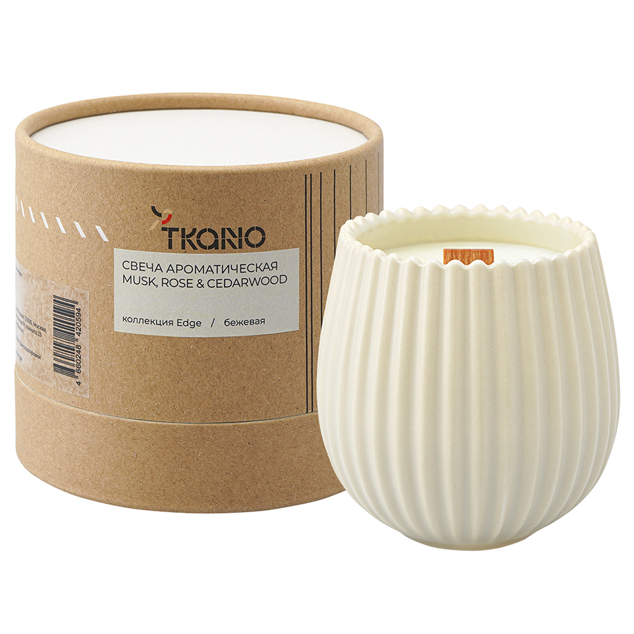 Свеча ароматическая с деревянным фитилём Musk, Rose & Cedarwood из коллекции Edge, бежевый, 60 ч, Tkano