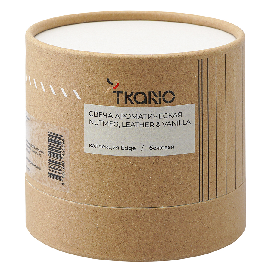 Свеча ароматическая с деревянным фитилём Nutmeg, Leather & Vanilla из коллекции Edge, бежевый, 60 ч, Tkano