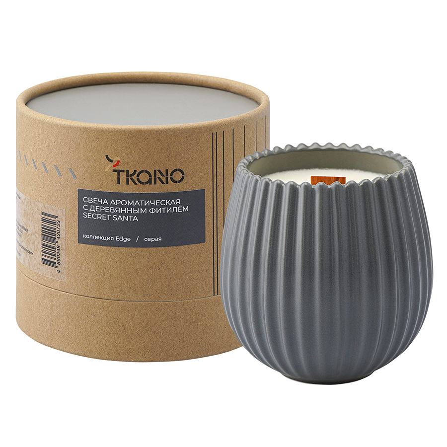 Свеча ароматическая с деревянным фитилём Secret Santa из коллекции Edge, серый, 60 ч, Tkano