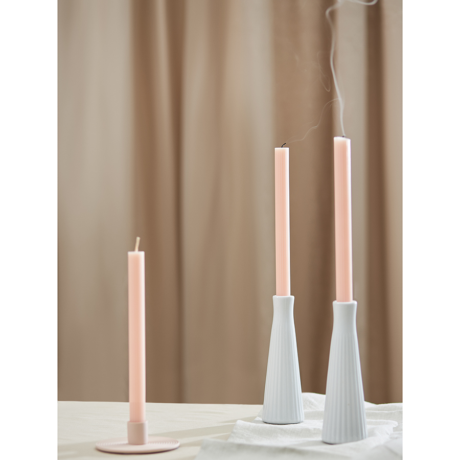 "Свечи бежево-розового цвета из коллекции Edge отлично подойдут в качестве декора и для создания особой атмосферы в интерьере. Их дизайн с фактурными гранями сочетает в себе классику и современные мотивы, отражая прочную связь между прошлым и настоящим. Эти свечи станут не только источником мягкого света, но и выразительным акцентом, способным придать любому пространству характер и индивидуальность.
