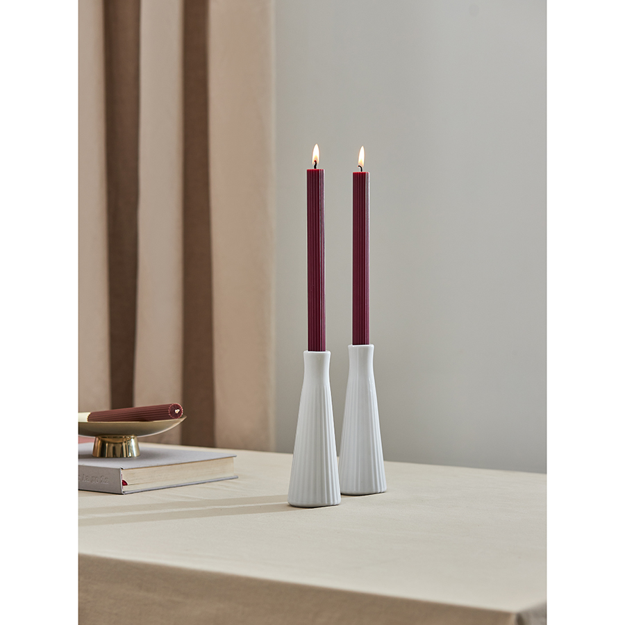 "Свечи бордового цвета из коллекции Edge отлично подойдут в качестве декора и для создания особой атмосферы в интерьере. Их дизайн с фактурными гранями сочетает в себе классику и современные мотивы, отражая прочную связь между прошлым и настоящим. Эти свечи станут не только источником мягкого света, но и выразительным акцентом, способным придать любому пространству характер и индивидуальность.