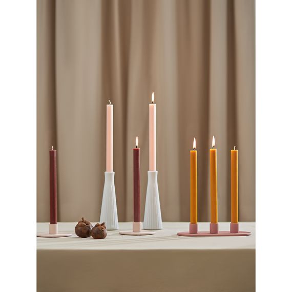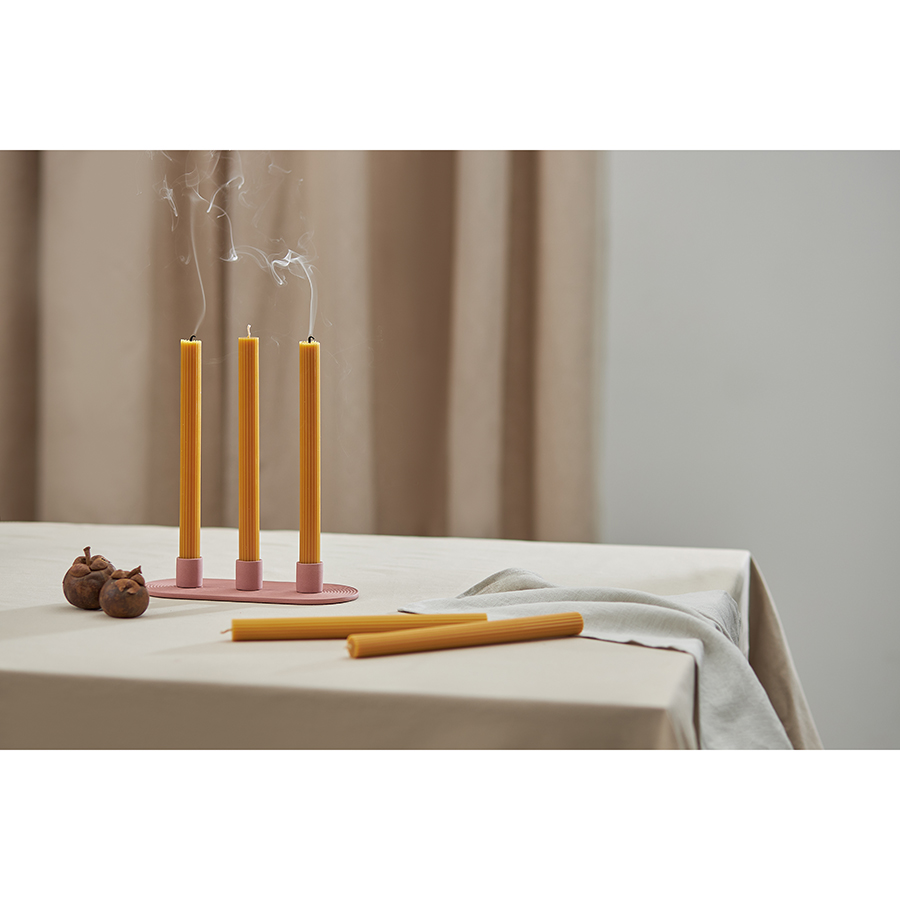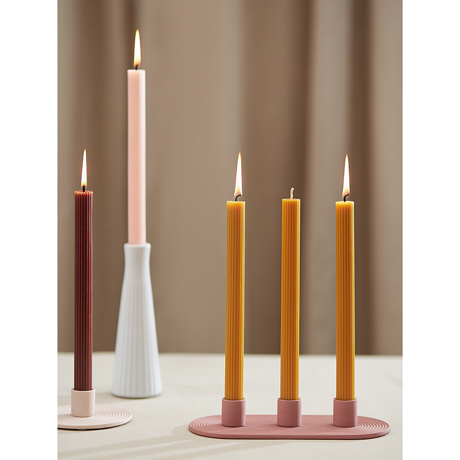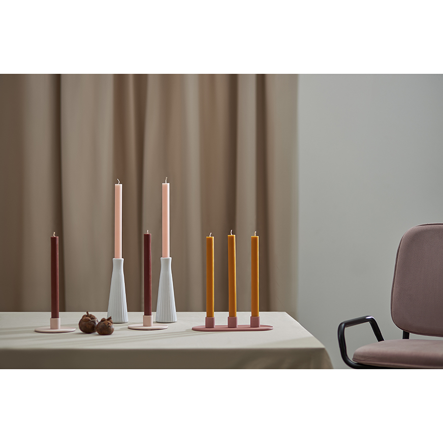 "Свечи цвета карри из коллекции Edge отлично подойдут в качестве декора и для создания особой атмосферы в интерьере. Их дизайн с фактурными гранями сочетает в себе классику и современные мотивы, отражая прочную связь между прошлым и настоящим. Эти свечи станут не только источником мягкого света, но и выразительным акцентом, способным придать любому пространству характер и индивидуальность.