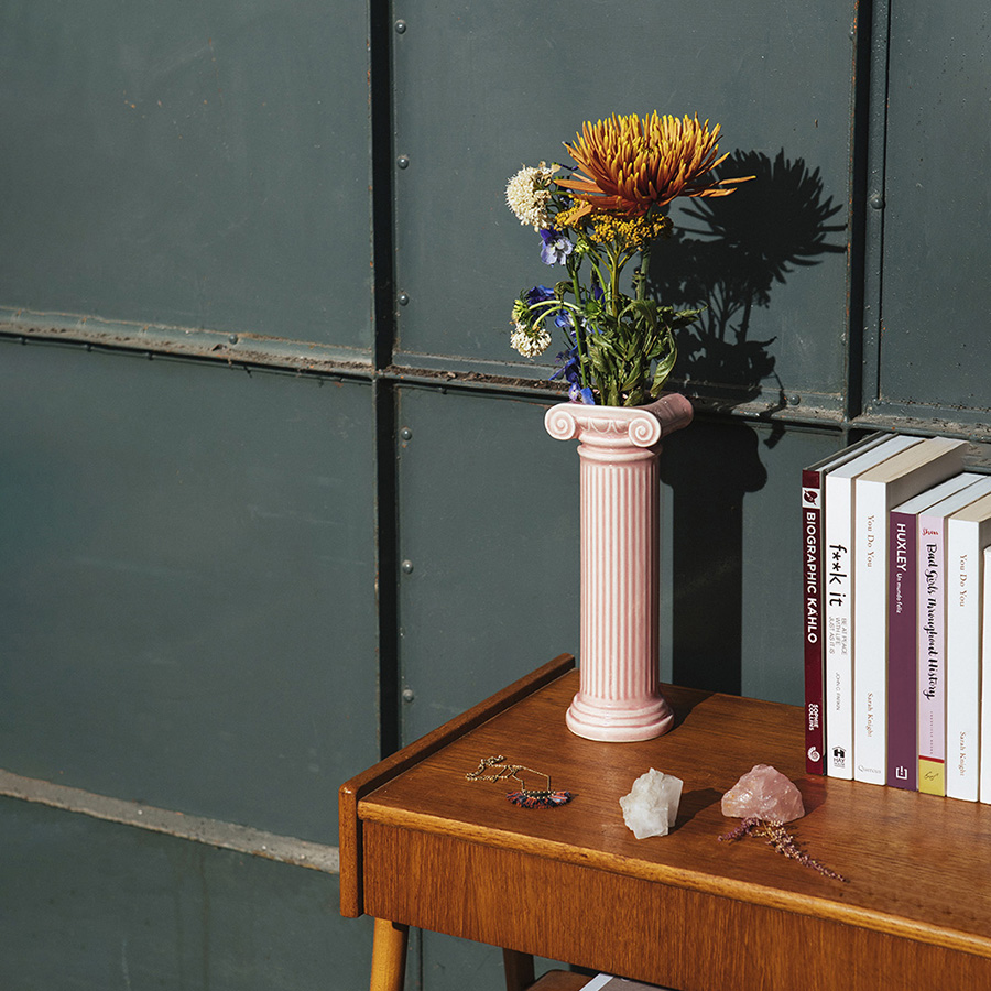 "Керамическая ваза в форме ионической колонны Athena – стильный аксессуар, способный добавить благородства и аристократичности в интерьер любого помещения. В ней будут замечательно смотреться как садовые, так и простые полевые цветы. За счет уникального дизайна изделие может использоваться и как самостоятельный элемент декора.