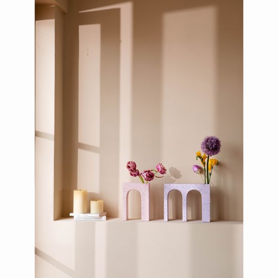 "Современная архитектурная ваза с узким горлышком в форме римской арки Acquedotto – стильный и компактный аксессуар для украшения любого помещения. В ней будут замечательно смотреться как ветка орхидеи, так и простые полевые цветы. За счет уникального дизайна изделие может использоваться и как самостоятельный элемент декора, добавив благородства и аристократичности в интерьер.