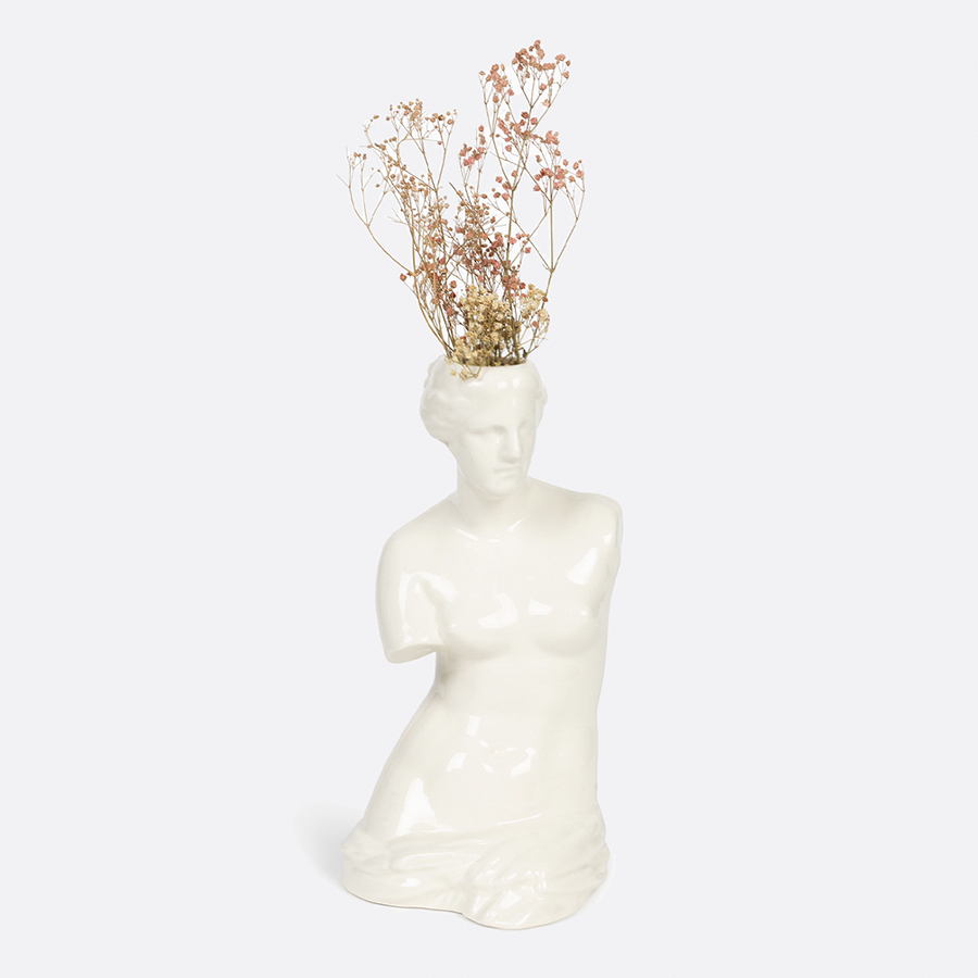 "Стильная ваза Venus, выполненная в форме богини Венеры, – вдохновленный античным искусством аксессуар и подарок, способный ярко выразить любовь к близкому человеку. Скульптура с плавными изгибами подчеркнет красоту цветов и станет органичной частью как классического, так и современного интерьера. Экологически чистая керамика безвредна для окружающей среды.