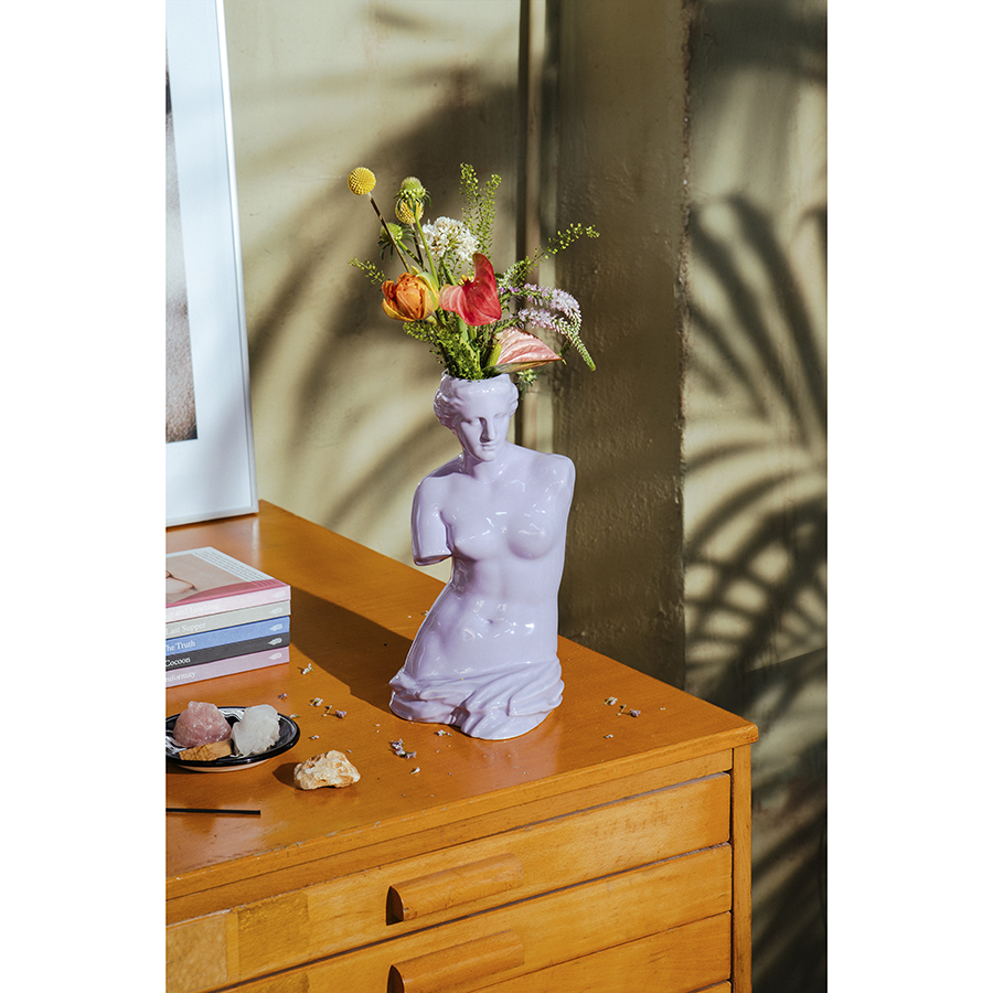 "Стильная ваза Venus, выполненная в форме богини Венеры, – вдохновленный античным искусством аксессуар и подарок, способный ярко выразить любовь к близкому человеку. Скульптура с плавными изгибами подчеркнет красоту цветов и станет органичной частью как классического, так и современного интерьера. Экологически чистая керамика безвредна для окружающей среды.