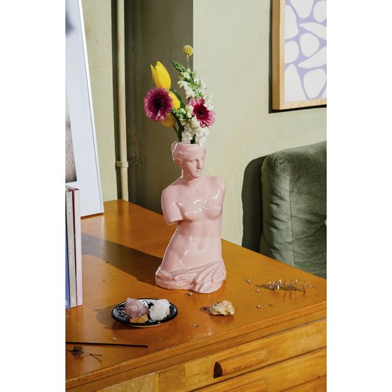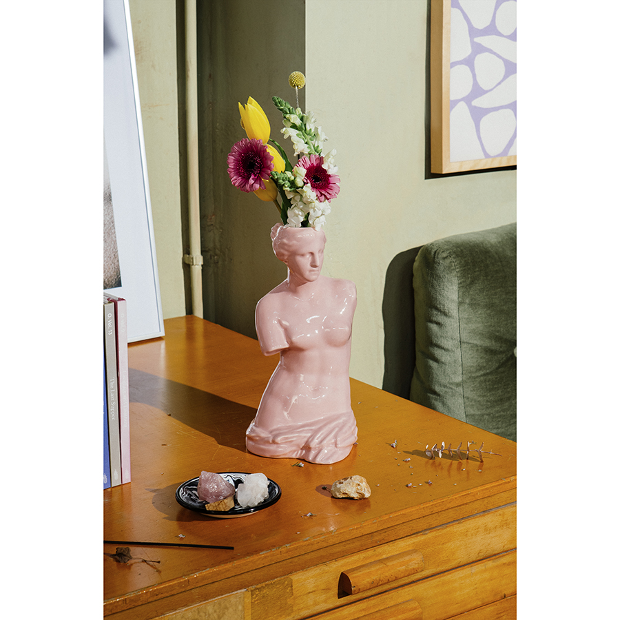"Стильная ваза Venus, выполненная в форме богини Венеры, – вдохновленный античным искусством аксессуар и подарок, способный ярко выразить любовь к близкому человеку. Скульптура с плавными изгибами подчеркнет красоту цветов и станет органичной частью как классического, так и современного интерьера. Экологически чистая керамика безвредна для окружающей среды.