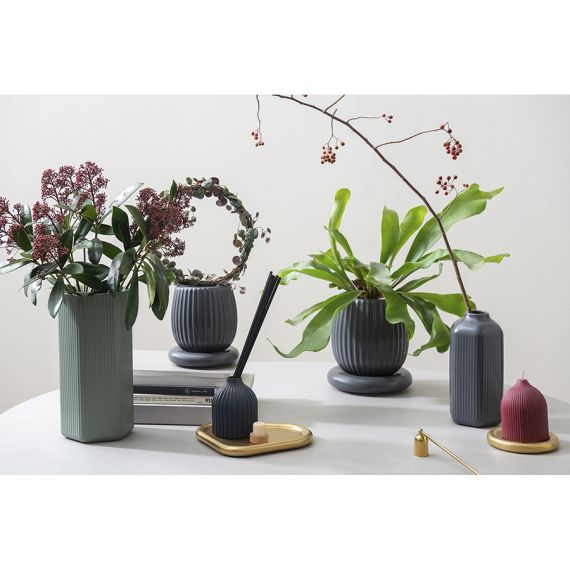 "Ваза серого цвета из коллекции Edge подойдет как для букетов из живых цветов, так и для сухоцветов. Простая форма вазы с фактурными гранями и зауженной горловиной будет сочетаться с другими предметами из этой же коллекции, позволяя создавать интересные интерьерные композиции. Изделие выполнено из доломита, устойчивого к сколам, легкого и экологически чистого материала, снаружи и внутри покрыто матовой глазурью.