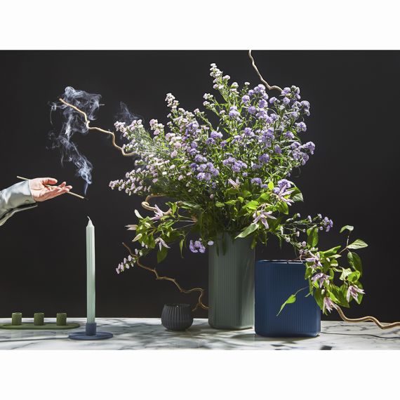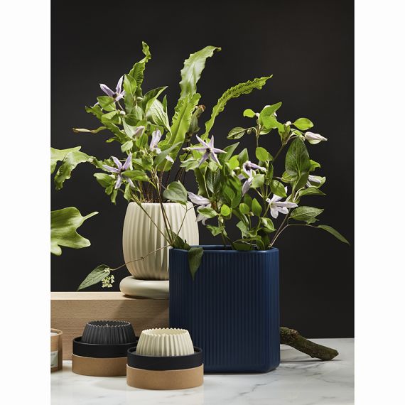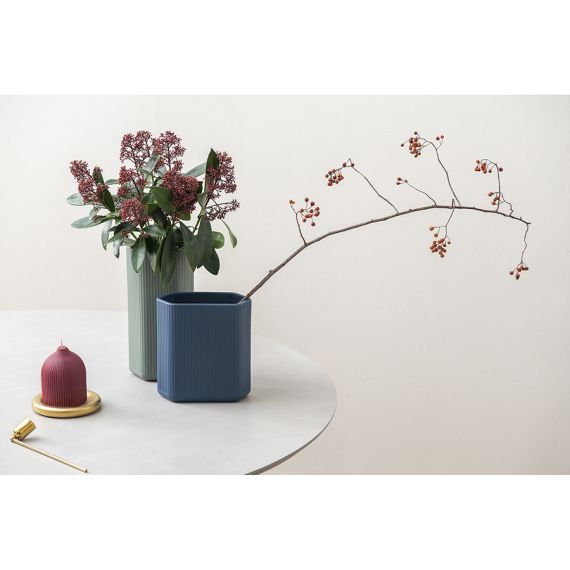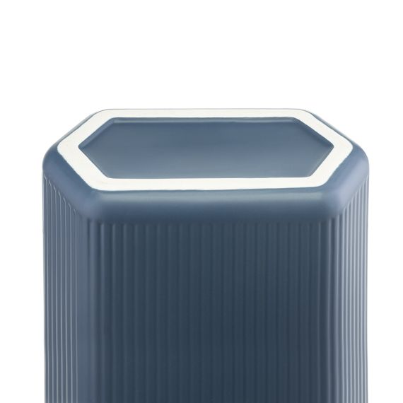 "Ваза темно-синего цвета из коллекции Edge подойдет как для букетов из живых цветов, так и для сухоцветов. Простая форма вазы с фактурными гранями будет сочетаться с другими предметами из этой же коллекции, позволяя создавать интересные интерьерные композиции. Изделие выполнено из доломита, устойчивого к сколам, легкого и экологически чистого материала, снаружи и внутри покрыто матовой глазурью.