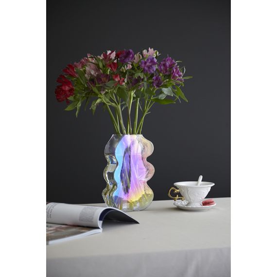 "Ваза Wavy – стильный декор, способный оживить пространство за счет своей оригинальной формы. Волнообразный рельеф создает ощущение спокойствия, помогая создать в интерьере атмосферу гармонии и уюта. Ваза идеально подходит для свежесрезанных букетов и композиций из сухоцветов.