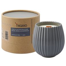 "Свеча ароматическая с деревянным фитилем Musk, Rose & Cedarwood серого цвета из коллекции Edge с дизайном, вдохновленным русскими традициями, отлично подойдет для домашнего декора и создания в интерьере уютной, расслабляющей атмосферы. Фактурные грани и округлая поверхность фарфорового стакана...