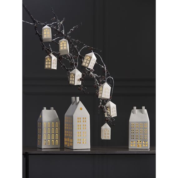 "Домик из фарфора Aarhus из коллекции New Year Essential – не просто украшение, а символ волшебства, надежды и семейного благополучия. Разместите его на праздничном столе, полке или окне, и он сразу преобразит пространство, создав атмосферу тепла и уюта. Благодаря подсветке с мягким свечением такой декор идеально подойдет в качестве ночника и станет отличной альтернативой свечам. Изделие из фарфора отличается прочностью, долговечностью и привлекательным внешним видом. Аксессуар изготовлен с любовью, которую вы непременно почувствуете, как только откроете коробку. В комплекте 3 батарейки LR44.