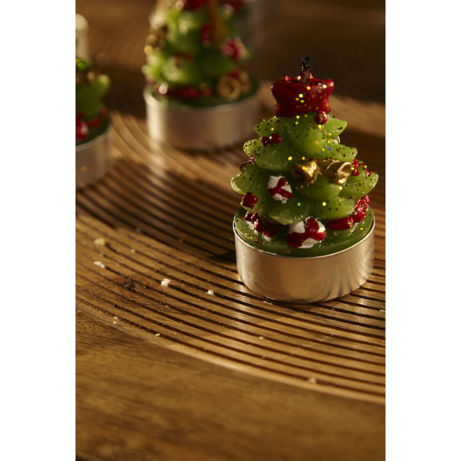 - Свечи выполнены в виде новогодних ёлок, что делает их не только источниками света, но и украшением интерьера.