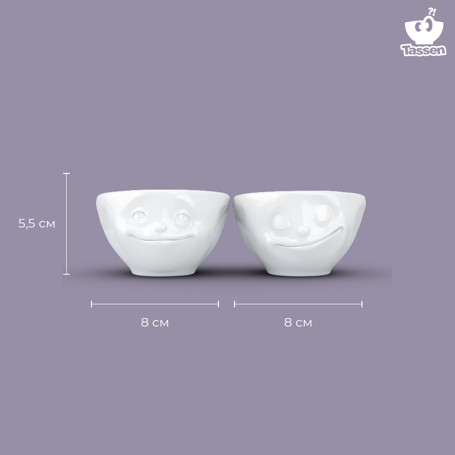 "Оригинальные чаши с забавными рожицами отлично подойдут для подачи соусов и десертов. Их также можно использовать для подачи эспрессо.