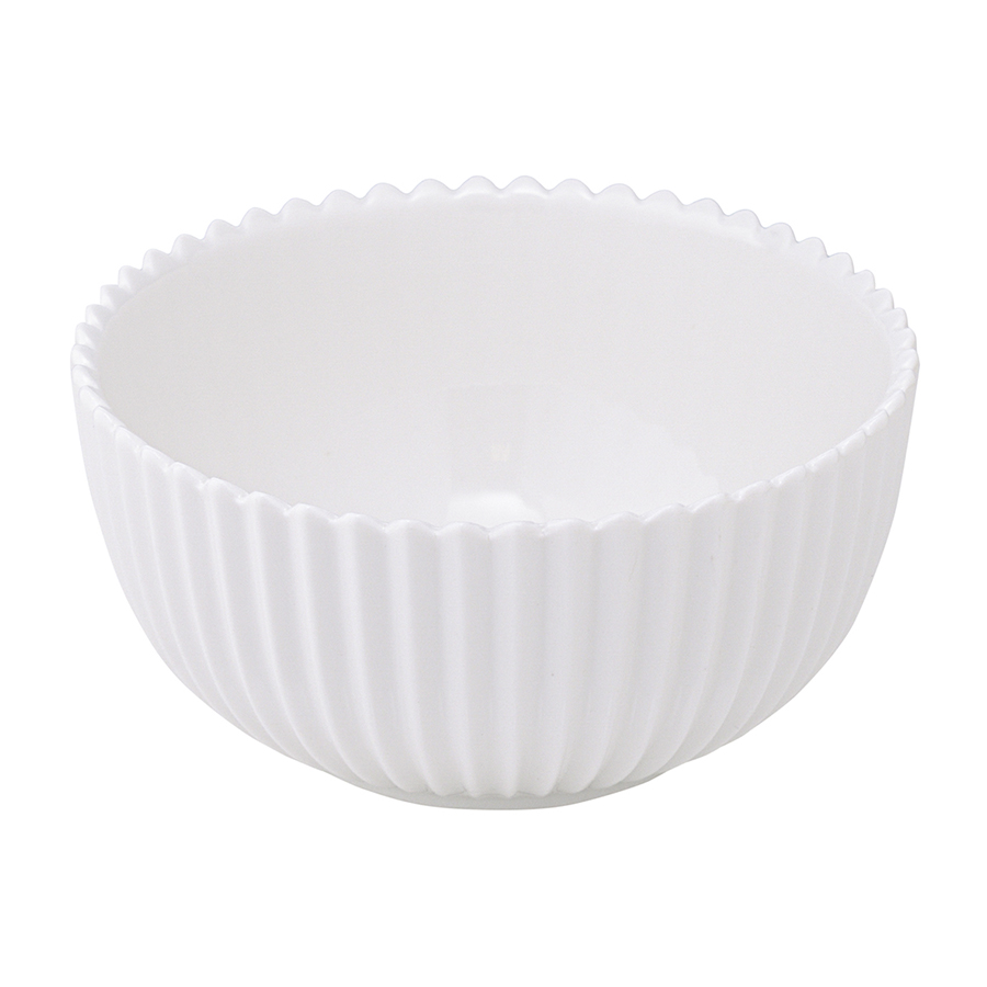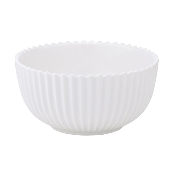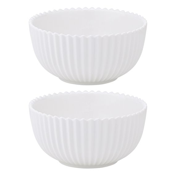 "Набор из двух небольших фарфоровых салатников идеально подходит для порционной подачи закусок, десертов, салатов и других блюд. Белоснежная глянцевая поверхность имеет рифленую фактуру и красиво отражает свет, что добавляет сервировке легкость и утонченность. При этом за фарфором, из которого сделана посуда, очень просто ухаживать: он не царапается, не меняет цвет и легко моется. Салатники можно комбинировать с другими предметами из коллекции Edge — например, тарелками, чашками или вазами.
